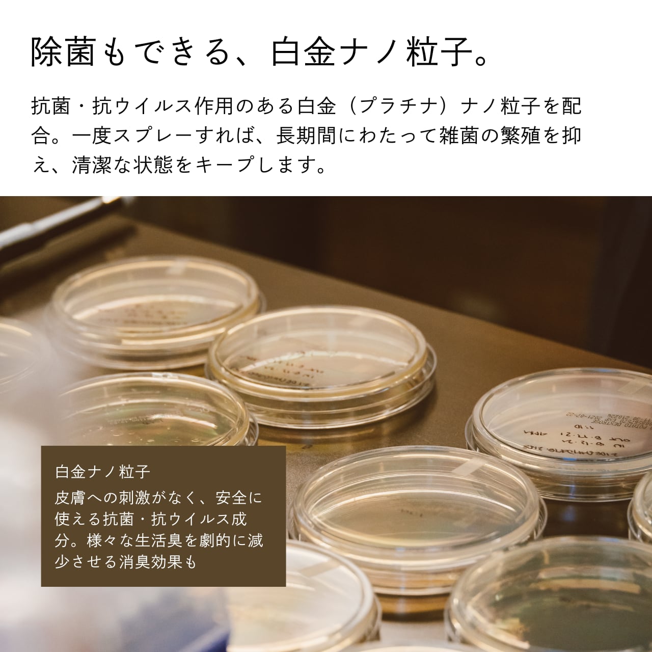 ・抗菌・抗ウイルス効果を持つ「白金ナノ粒子」が長期間にわたって雑菌の繁殖を抑制